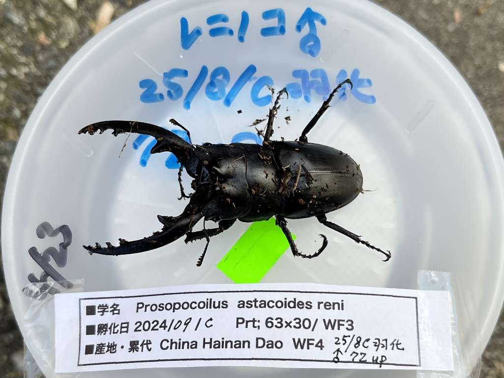 能勢YG血統ブリード個体25/初夏 羽化 ♂71mm、♂70mm×2匹、♂69mm、♂52mm、♀1匹入荷しました。 ♀別血統で在庫していますのでペア販売させて頂きます。 *♂71mmペア販売済みです。 来年初夏ブリードにご利用下さい。 明日問屋さんがご来店予定ですので残った分は出荷になると思われます。 *残り4ペア出荷済みです。 |