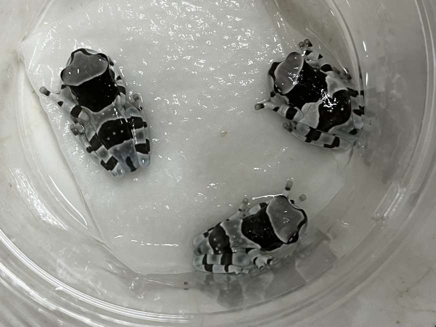 天然採取個体 ヤマアカガエル 雨上がり5℃ 2ペア+♂2匹 2/17 朝の時点でまだ抱卵状態でしたので今晩産卵すると思われます。 |